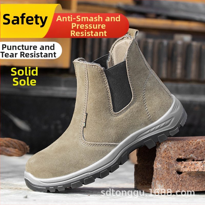 Pánska bezpečnostná pracovná obuv, z velúrovej teľacej kože, s oceľovou špičkou, proti nárazu a perforácii, odolná voči opotrebeniu, vysoký vršok