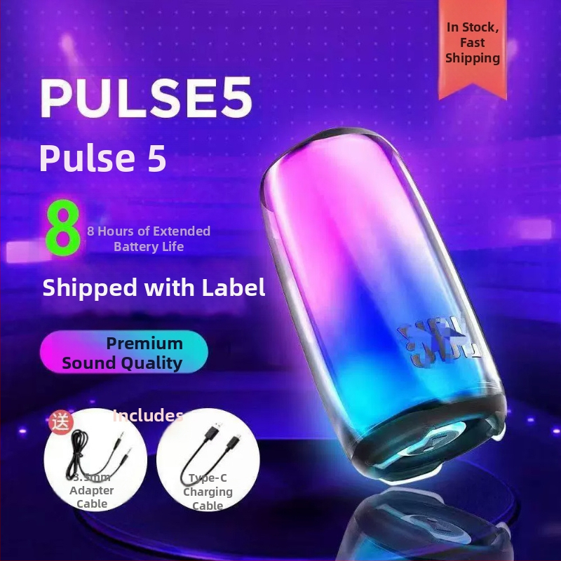 Pulse 5 bezdrôtový Bluetooth reproduktor so subwooferom, IPX9 vodeodolný, 2 reproduktory, Bluetooth 5.1, 15W, zabudovaná batéria 1000–1200 mAh, frekvenčný rozsah 100 Hz–20 kHz, RGB osvetlenie
