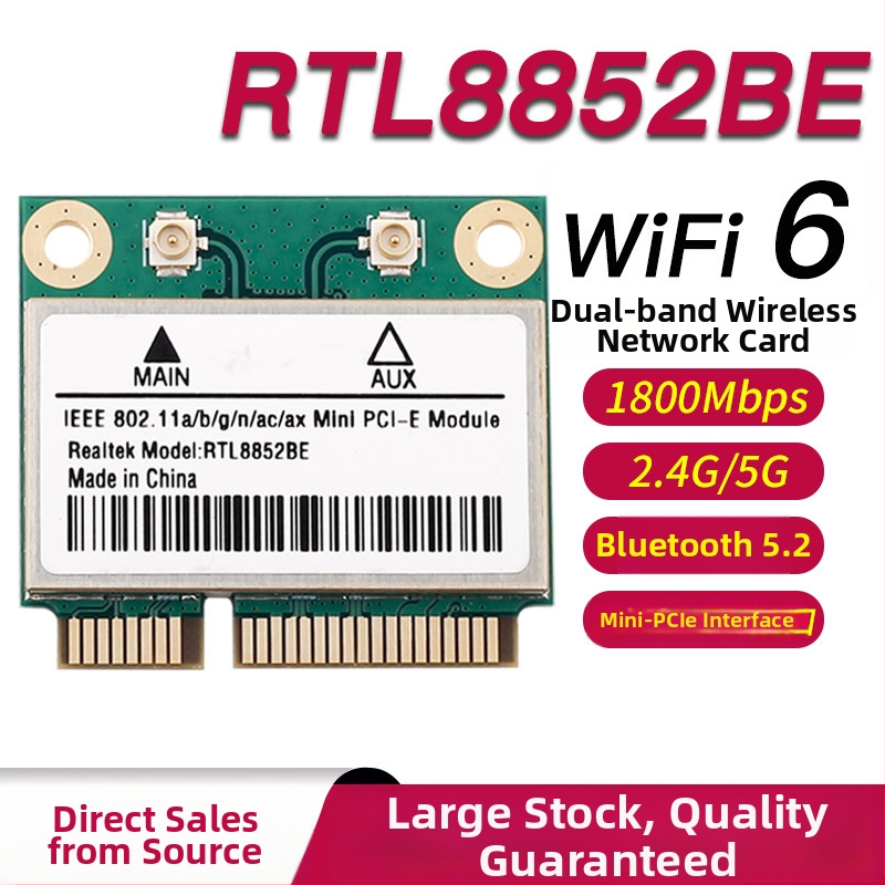 RTL8852BE WiFi 6 Mini PCIe vnútorná bezdrôtová karta Bluetooth 5.2, 1800 Mbps, dvojpásmová 2,4/5 GHz, podpora 802.11ax/ac/n/g/b/a