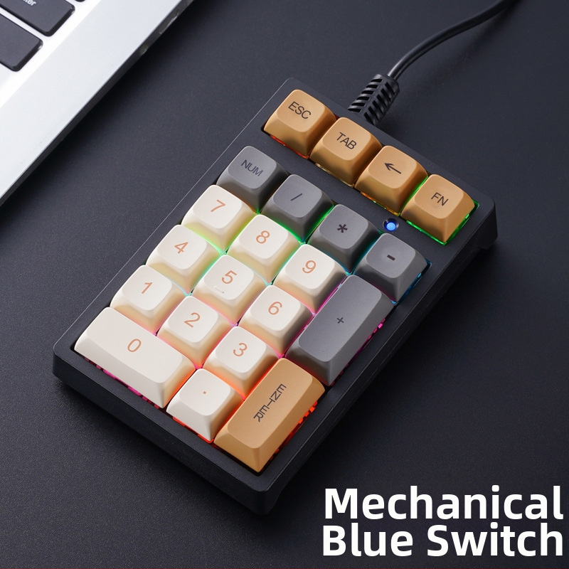 T21 21-klávesová mechanická klávesnica pre notebooky, káblové pripojenie, RGB podsvietenie, mechanické spínače