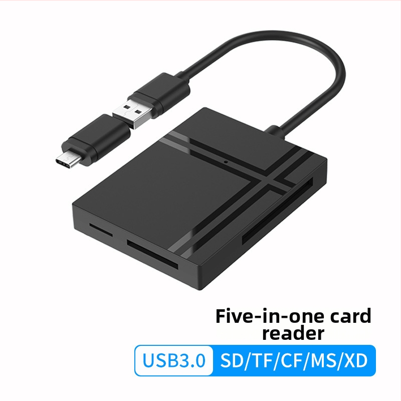 USB 3.0 päťvstupová čítačka kariet s USB Type-C dvojitým rozhraním; podporuje CF, SD/SDHC, TF, Memory Stick Pro Duo a MMC; kompatibilné s Windows/macOS/Linux/Android
